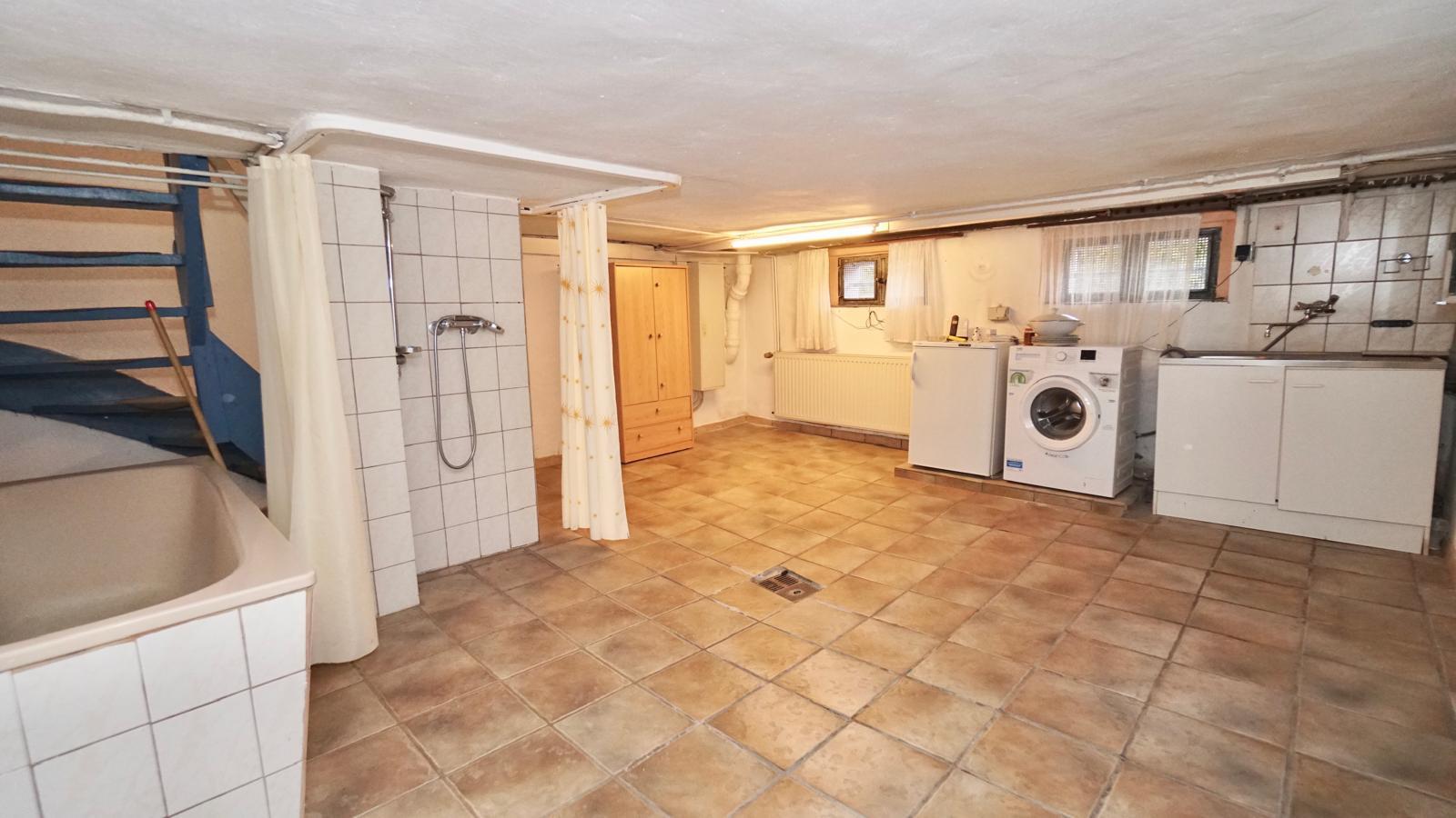 Über die Küche im EG gelangen Sie in den Keller, der in zwei Räume aufgeteilt ist und im Jahre 1998 von außen ausgegraben und isoliert wurde: Der erste Bereich besitzt aktuell nur eine niedrige Deckenhöhe, wobei eine Tieferlegung des Kellers möglich wäre. Diese wurde auch im zweiten Kellerraum bereits durchgeführt, welcher über eine gute Stehhöhe verfügt und in welchem sich die Hausanschlüsse sowie die im Jahre 2020 erneuerte Gasheizung befinden.