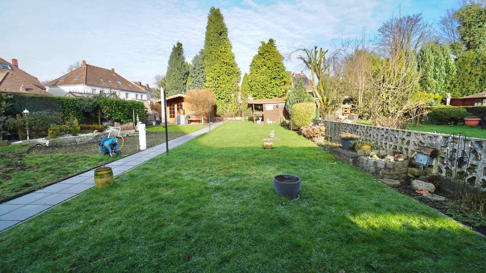 Sowohl der vordere als auch der hintere Garten werden regelmäßig von einem Gärtner gepflegt. Im Jahr 2024 wurde der Gartenweg neu gepflastert, welcher gleichzeitig die Grenze zum Nachbarn bildet, sodass Sie die gepflegte grüne Oase schon im Sommer 2025 genießen können.