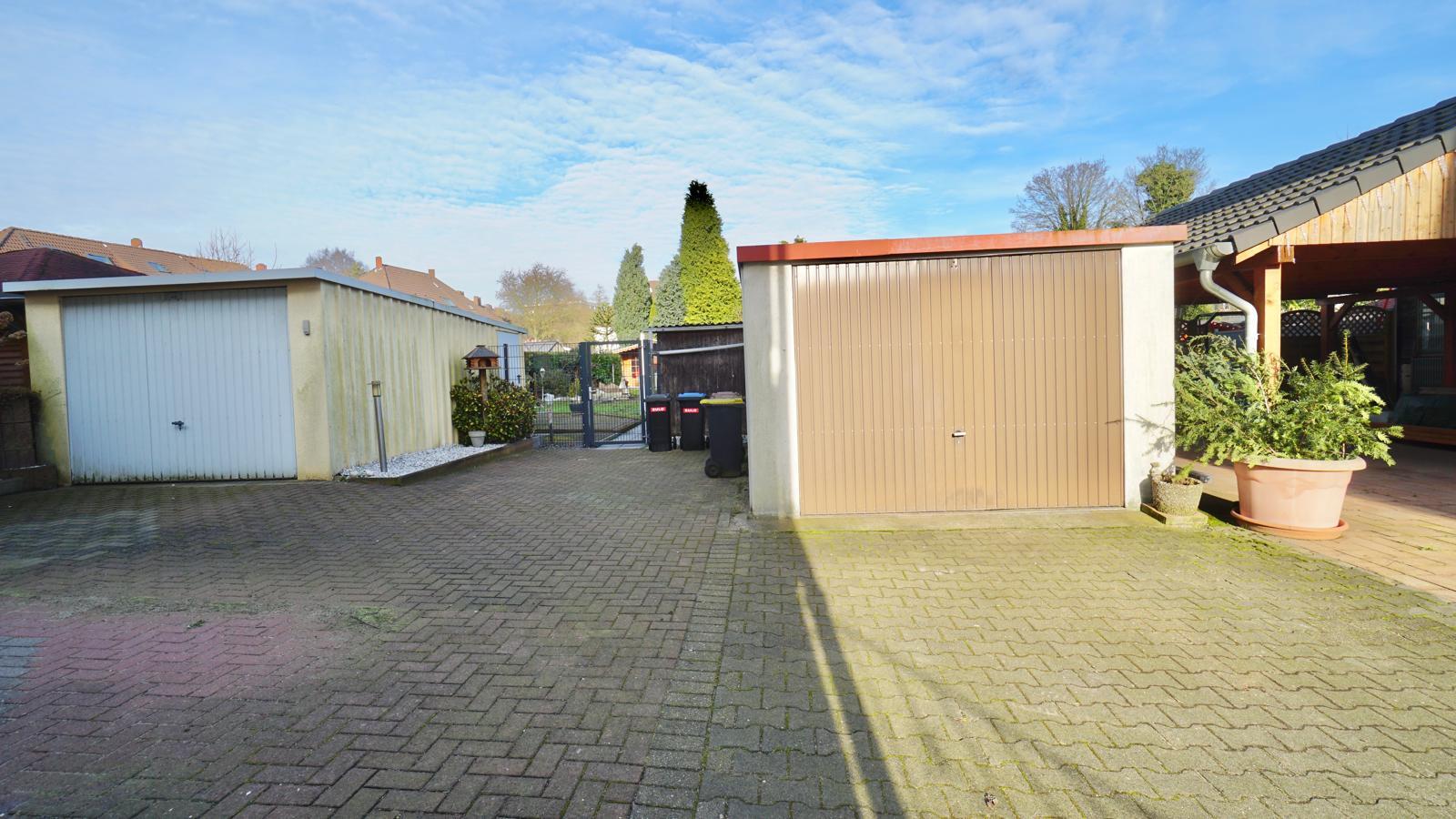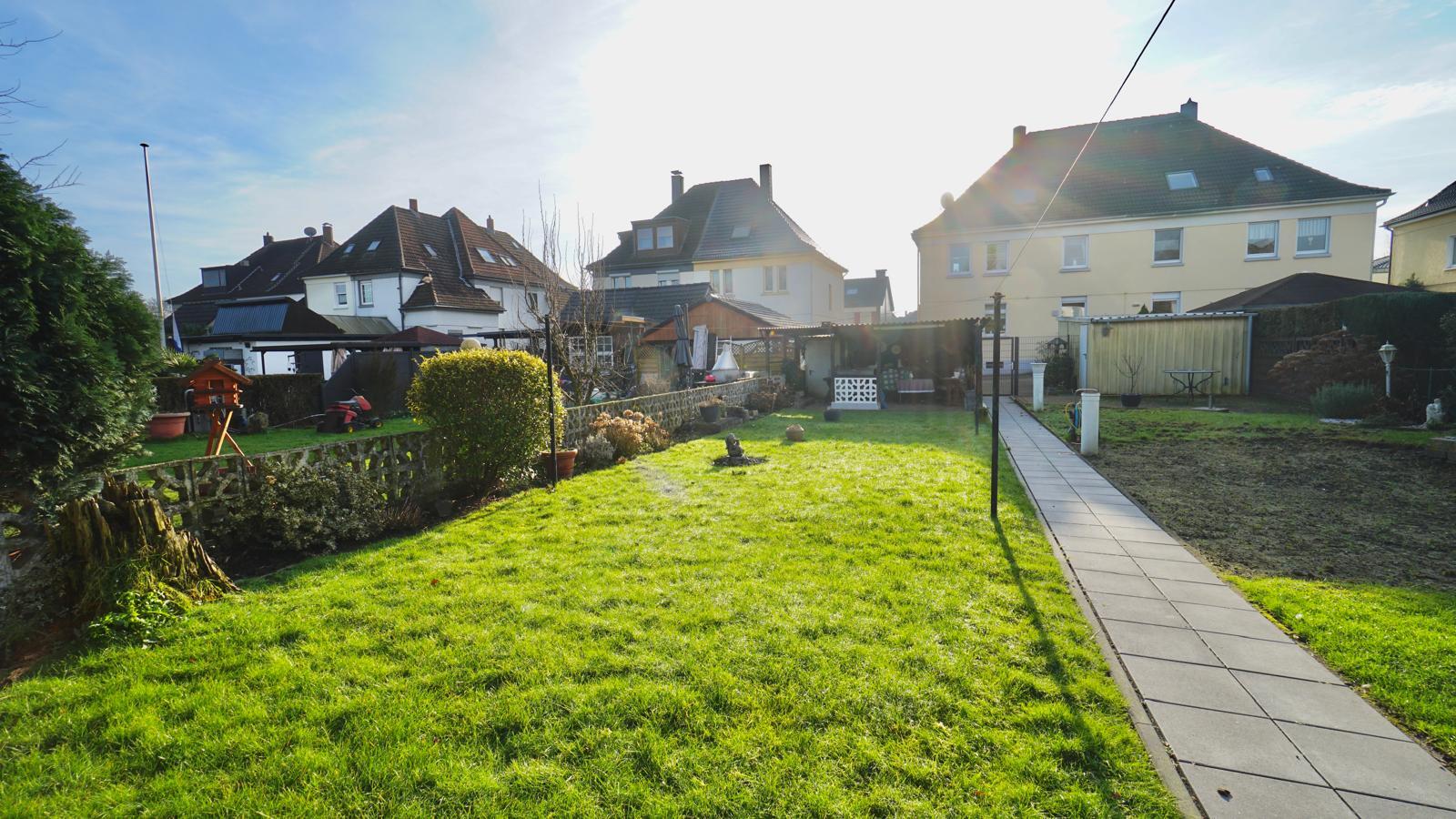 Der Außenbereich rundet das Angebot perfekt ab. Ein lang geschnittener Garten mit einem frisch erneuerten Weg aus dem Jahr 2024, eine überdachte Terrasse sowie eine Garage. Zudem besteht die Möglichkeit, einen weiteren Stellplatz vor dem Haus zu schaffen.