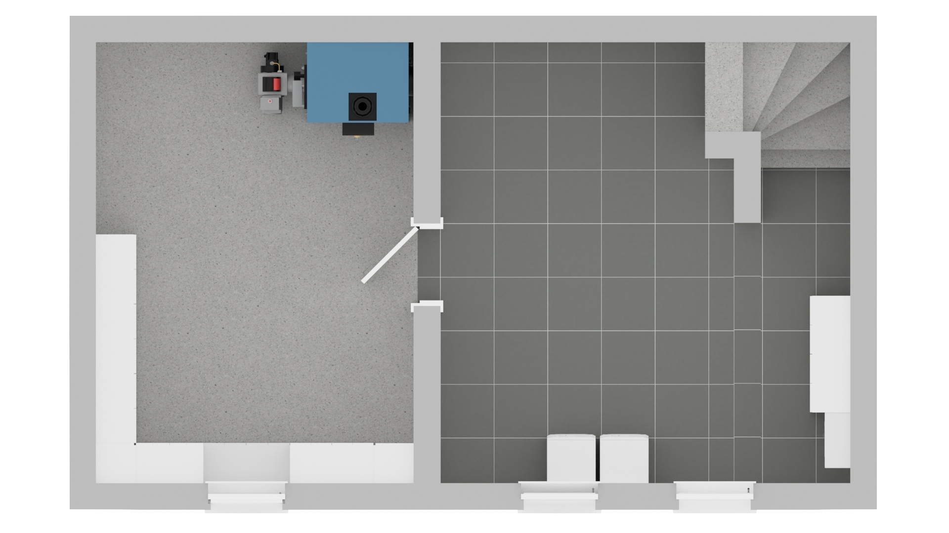 Im Obergeschoss befinden sich zwei großzügige Zimmer. Das größere eignet sich ideal als Schlafzimmer, während das kleinere als Kinderzimmer oder Büro genutzt werden kann. Alternativ ließe sich dieser Raum abtrennen, um ein geräumiges Badezimmer sowie einen kleineren Büroraum oder einen Ankleideraum zu schaffen. Da sich das WC und die Küche direkt darunter im Erdgeschoss befinden, lassen sich die Wasser -und Abwasserleitungen leicht in das Obergeschoss verlegen.