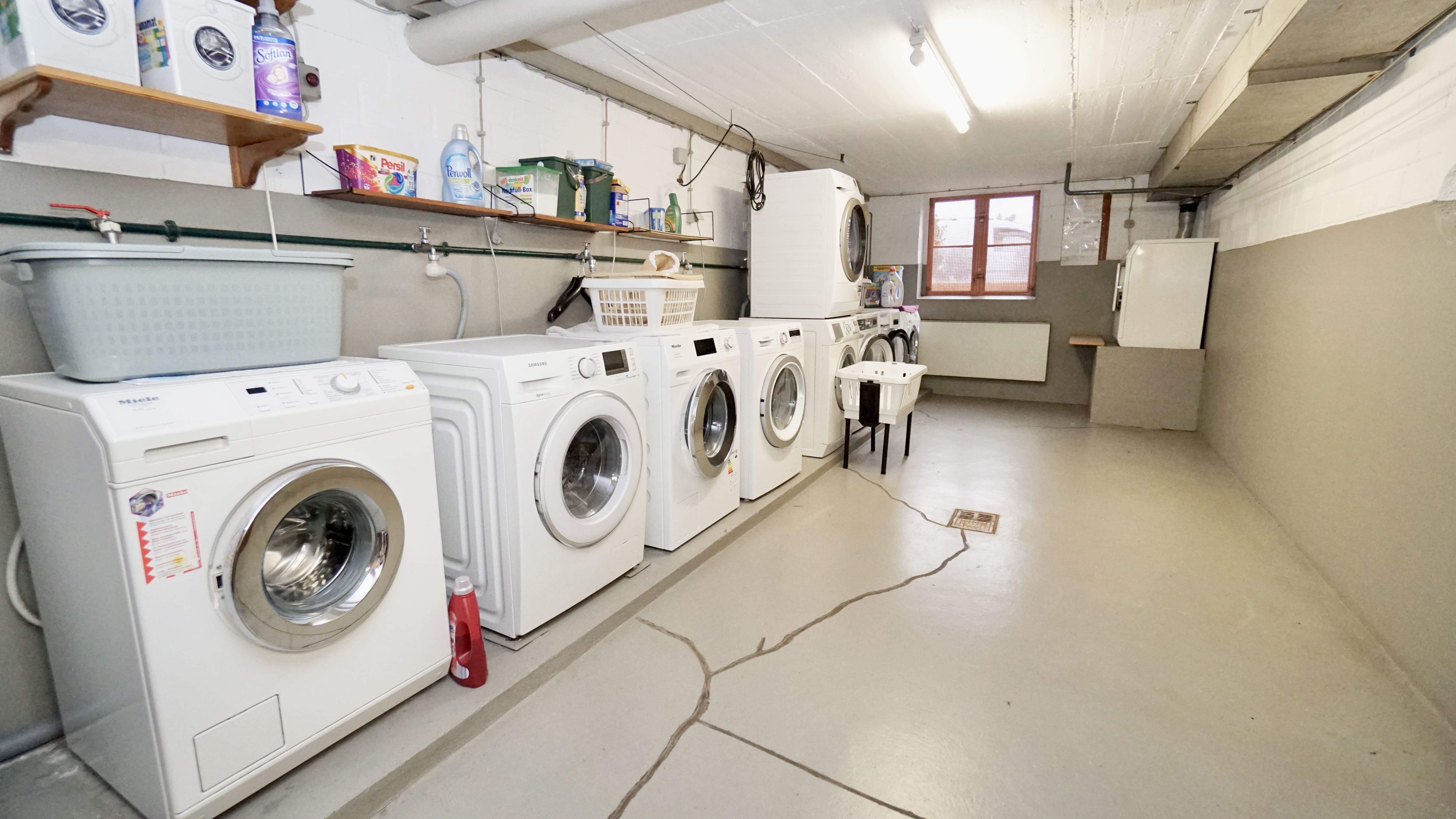 Das Gebäude ist voll unterkellert und verfügt über gemeinschaftlich genutzte Bereiche wie Waschküche, Trockenraum und Fahrradkeller.