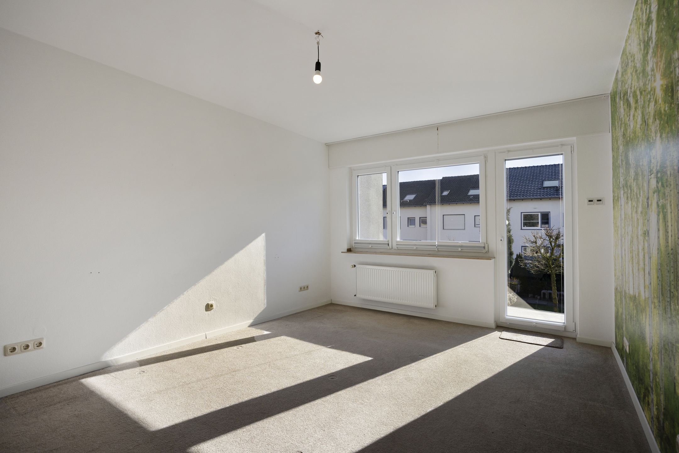Im Obergeschoss setzt sich die durchdachte Raumaufteilung fort. Hier befindet sich das Tageslicht-Hauptbadezimmer, ausgestattet mit Dusche und Badewanne. Darüber hinaus stehen Ihnen auf dieser Etage drei Schlafzimmer zur Verfügung, darunter das großzügige Elternschlafzimmer mit ca. 18 m² und Zugang zum im Jahr 2016 sanierten Balkon. Von hier aus genießen Sie einen angenehmen Blick in den Garten.