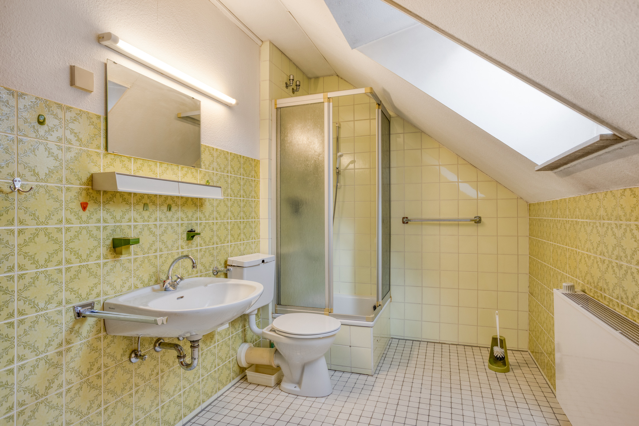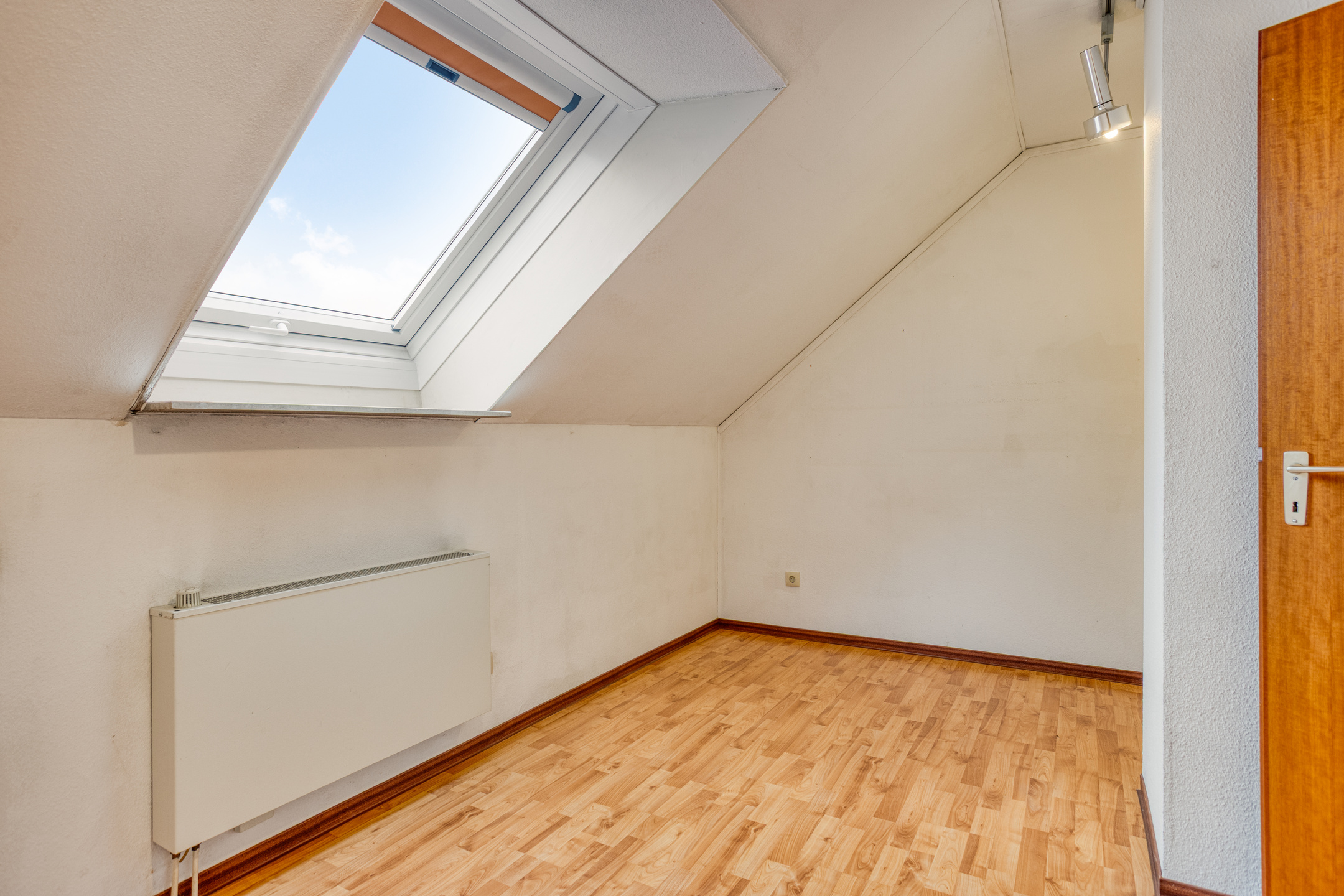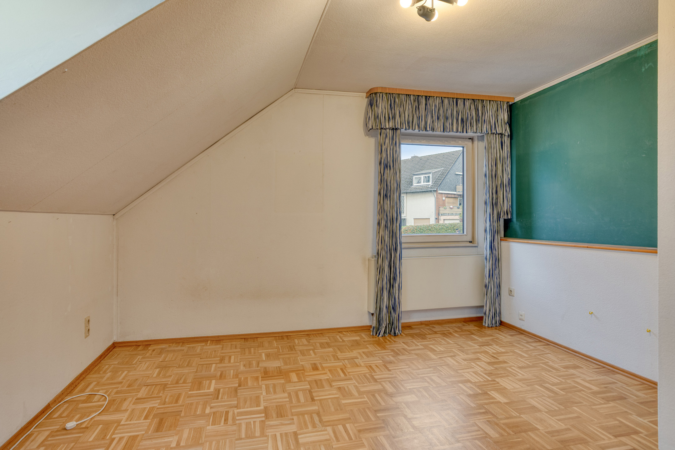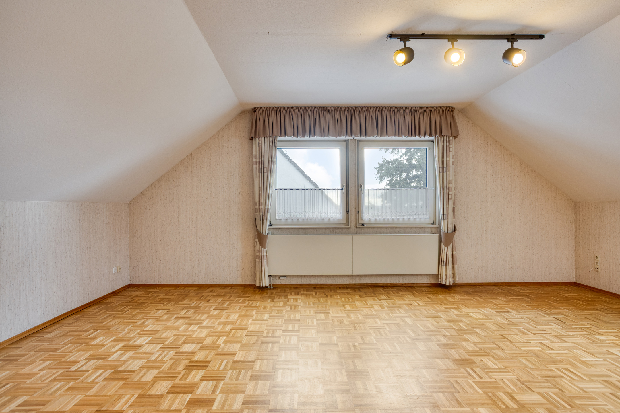 Im Dachgeschoss befinden sich drei weitere Schlafzimmer. Das größte Zimmer auf der linken Seite misst ca. 35 m² und bietet vielfältige individuelle Nutzungsmöglichkeiten. Zusätzlich gibt es ein weiteres Zimmer, das als Büro genutzt werden kann, einen Abstellraum sowie ein weiteres Tageslichtbad mit Badewanne.