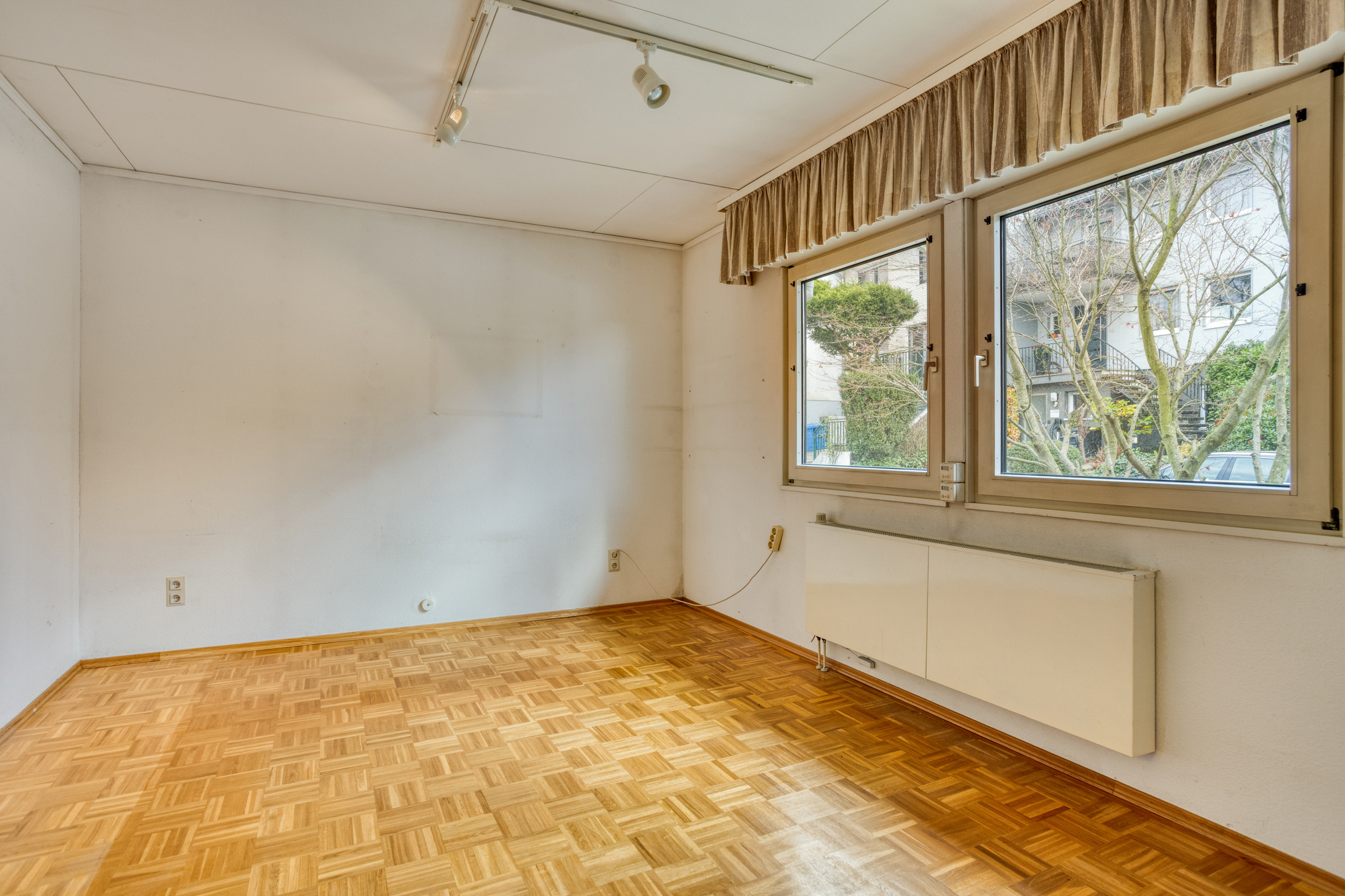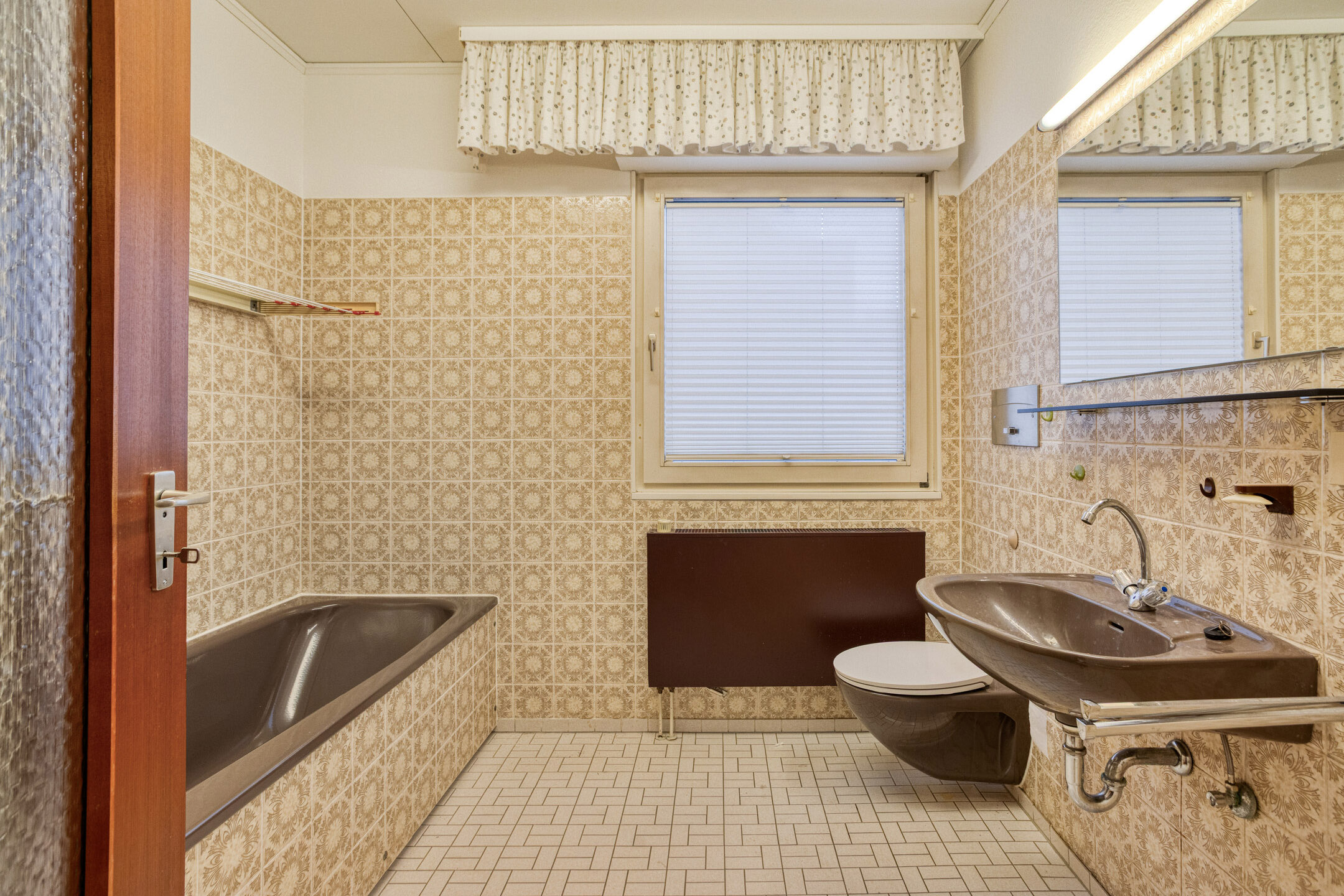 Das freistehende Fertighaus mit Einliegerwohnung aus dem Jahr 1977 befindet sich auf einem ca. 625 m² großen Grundstück. Die Gesamtwohnfläche von rund 272 m² verteilt sich auf das Erd- und Dachgeschoss sowie auf eine im vollunterkellerten Untergeschoss gelegene Einliegerwohnung.