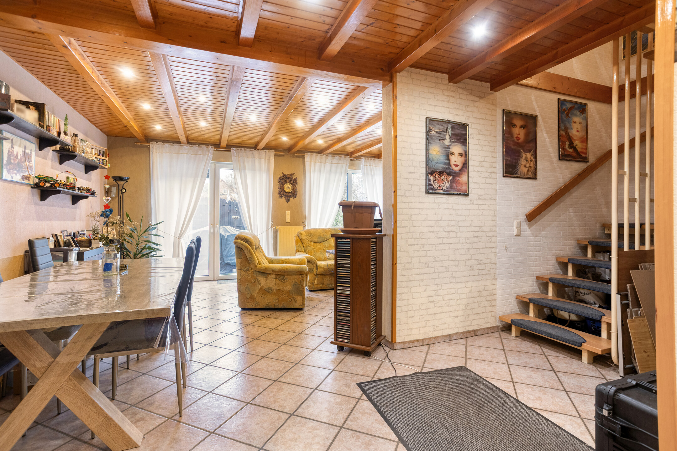 Das Herzstück des Hauses bildet der großzügige Wohn- und Essbereich mit ca. 32 m². Große Fensterflächen sorgen für eine helle und freundliche Atmosphäre und eröffnen einen schönen Blick auf die Terrasse sowie den angrenzenden Garten.