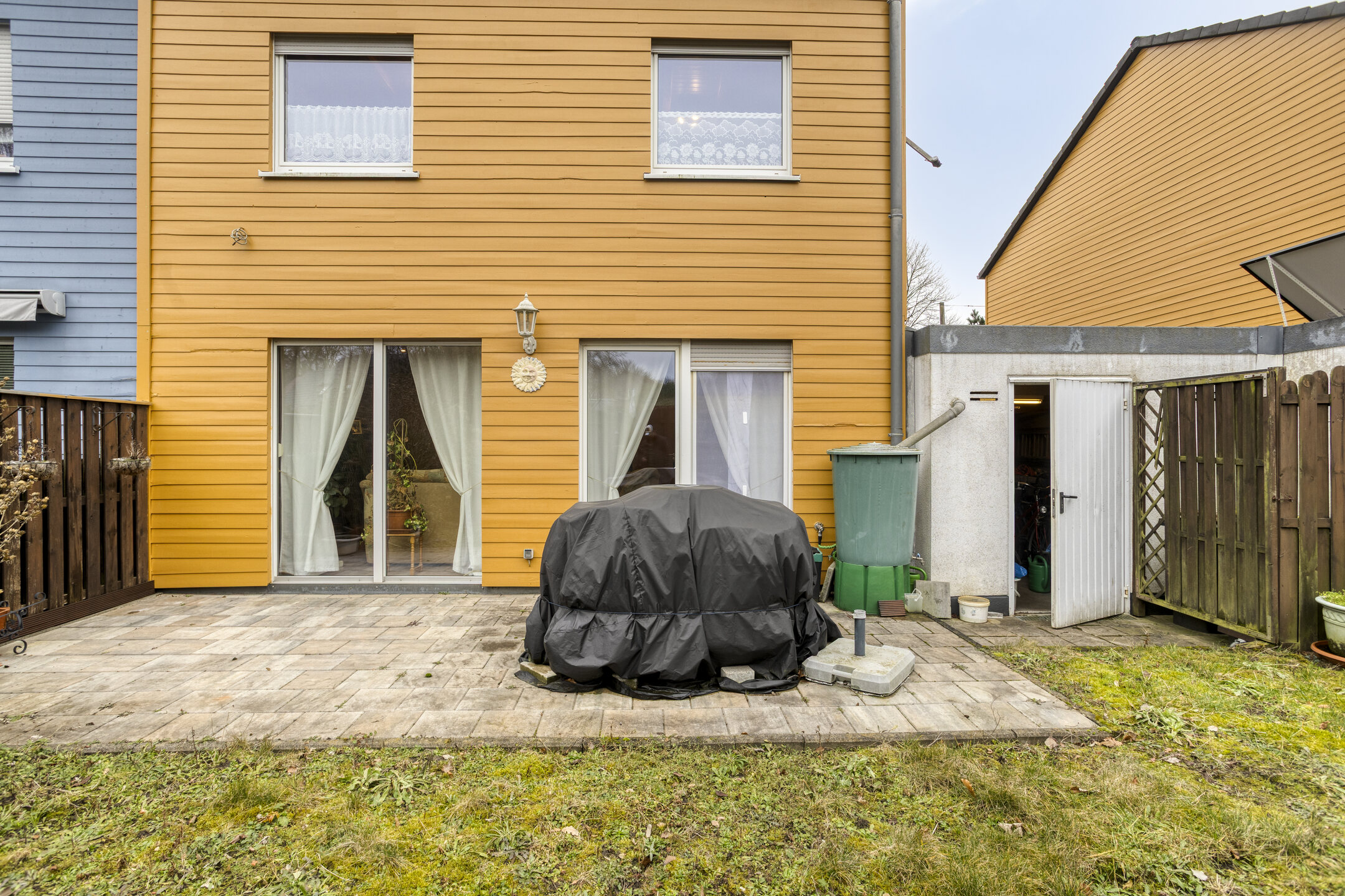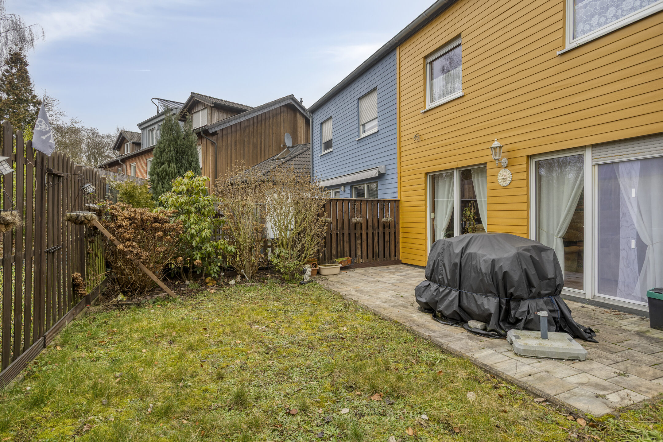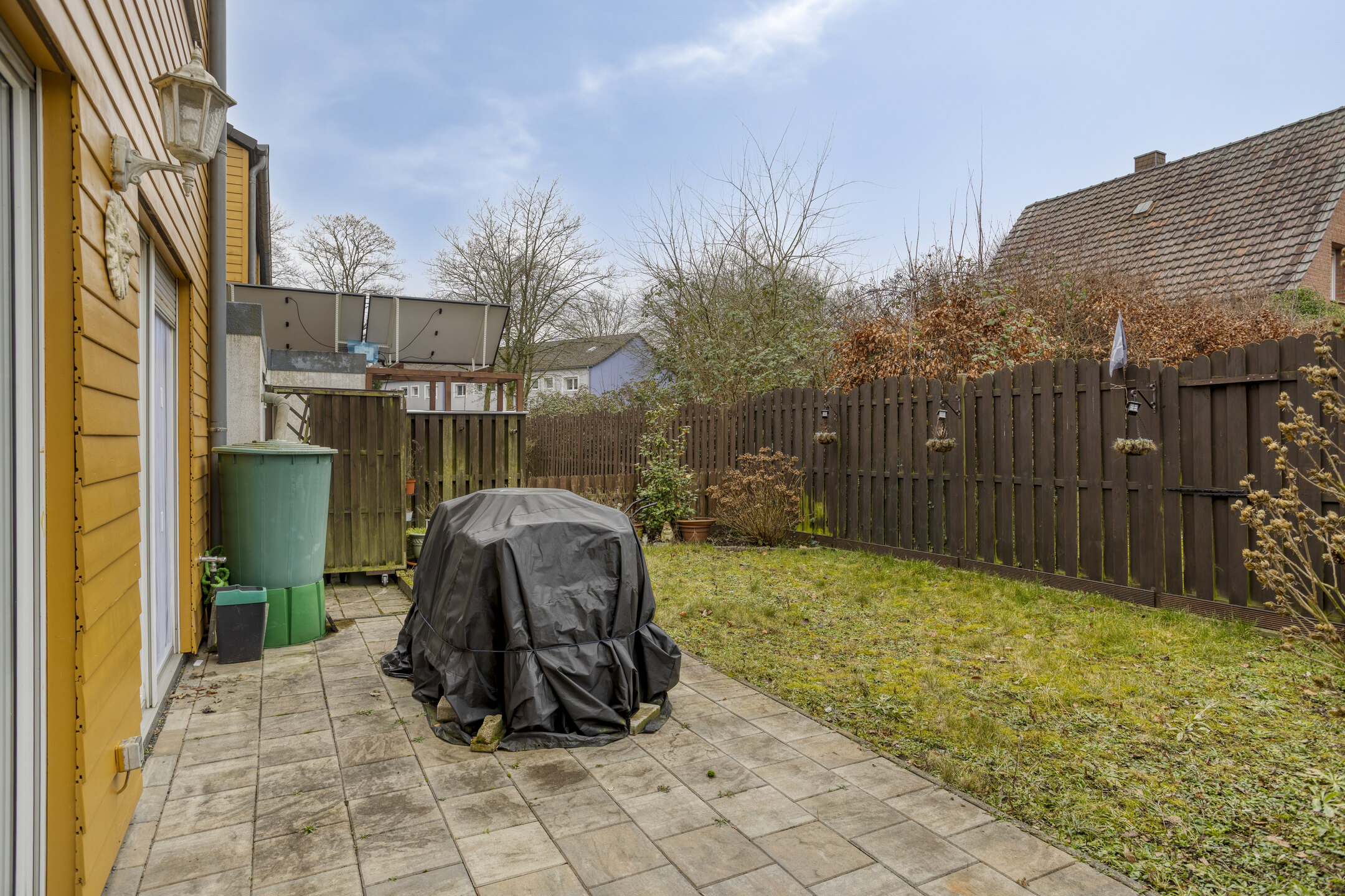 Eine sonnige Terrasse mit westlich ausgerichtetem Garten, ein Außenstellplatz sowie eine großzügige, ca. 11 Meter lange Garage bieten hohen Wohn- und Nutzkomfort.